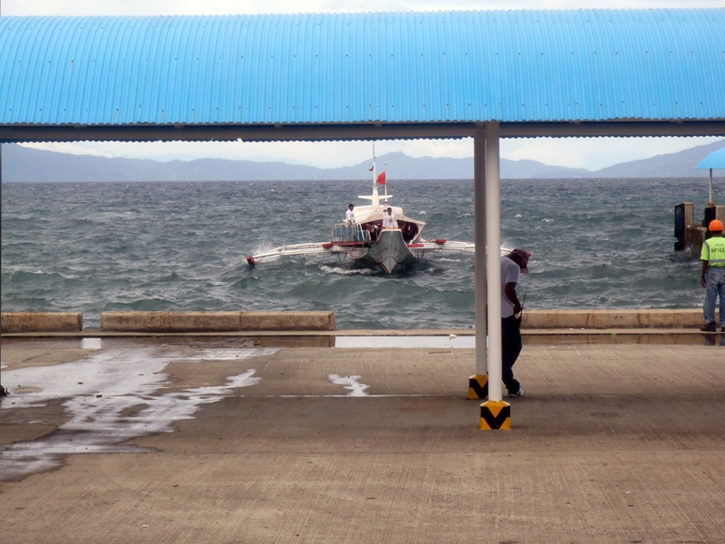 早めに港に出て来て良かった! 本当はもう一度カフェでコーヒーでもなんて考えていたのです。いやぁ、参ったなぁ、1時間も早く着いてしまうと、バタンガスの港でずっとドライバーが来るのを持っていなければならない、一抹の不安が頭を過ります。海は静か、まるで僕を待つように出航!