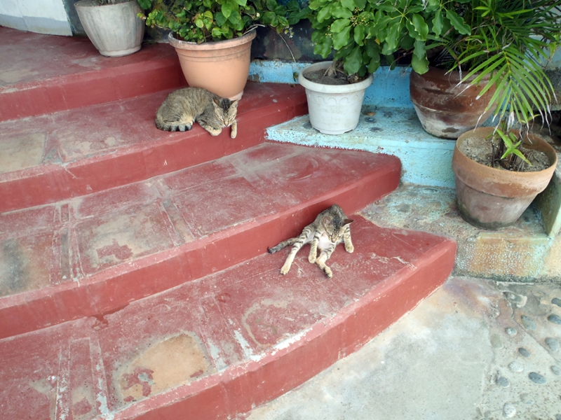 猫ものんびり、人を恐れる気配はあまりありません。どうだい? この街は? 住んでいて楽しいかい? 決して痩せ細っている訳ではなく、そこそこ栄養状態は良さそうです。レストランで残り物でももらっているのでしょうか? こんな風景を見ているだけで、ストレスのない生活に憧れます。でも永住するにはこの街は小さすぎるかも?