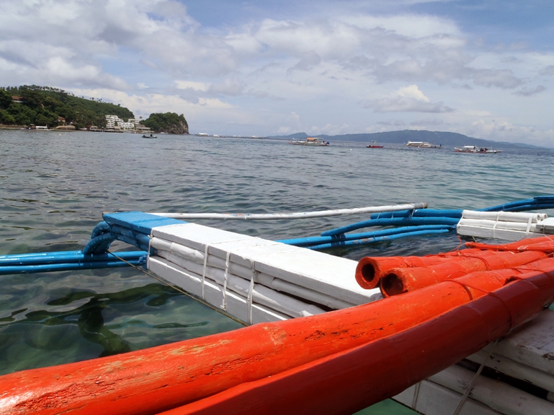 僕の前に座っているフィリピン人のおばちゃん、もうちゃっかりライフベストを着込んでいます。そう、島の沿岸を走っているので万が一船がひっくり返っても何とか陸までは泳いで行けそう、少なくとも溺れ死ぬ恐怖は感じませんでしたが、何時自分に吐き気が襲って来るか? それは不安でした。