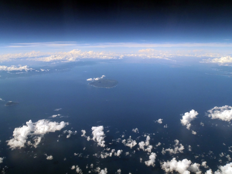 飛行機は定刻に出発、楽しかったフィリピン(最後は不愉快なことばかりだったけれど)を後に、窓の外に奇麗な海を見下ろします。また来るね.....、そう思いつつ現実に引き戻されて行きます。たまたま隣に座った日本人の人と話し込み、名刺交換もしました。リタイヤして今はフィリピンで工場を持っている? 羨ましいリタイヤです。