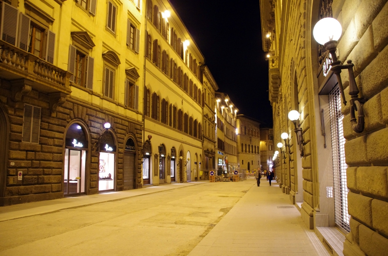 さて街歩きの開始、もちろん空は真っ暗でしたが、街には街灯も灯り、更に道路の両側が3-4階建の建物に取り囲まれ、間接照明の効果もあって結構明るく感じます。ローマほどは治安は悪くないだろう、そう勝手に思い込み、割と警戒心なく歩くことが出来ました。