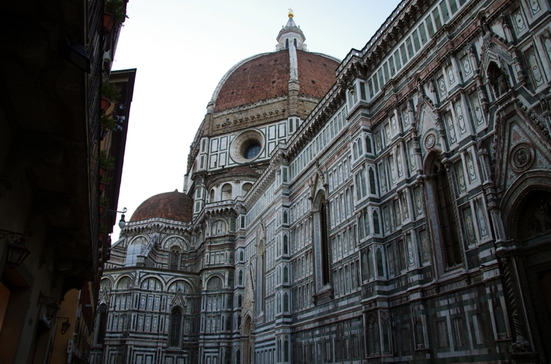 ドームの真下、下から見上げます。初期ルネッサンス建築の代表、ドームの内側には装飾の絵がビッシリ、描いた絵を持ち上げたのだろうか? もしかして逆さに宙づりになって絵を描いたのだろうか? そんなことを考えました。中は何となくヒンヤリ、歴史の重みに自分自身が潰されるような、そんな感覚に陥ります。