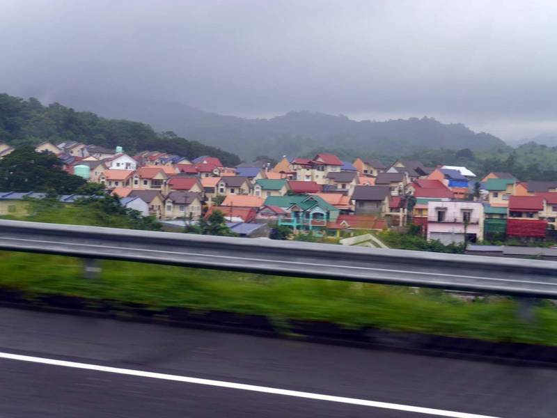 このドライバーとはいろいろな話をしました。お互い退屈な時間、そんなコミュニケーションがあって然るべきではないでしょうか? 窓の外にはどんよりした雲がタレ込み、山の頂上はすっぽり覆われて見えなくなっていました。時々強く雨が降るとドライバーはスピードを落とし、安全運転をしてくれます。スービック〜クラーク間は約80km、1時間ちょいのドライブですが、この車にはこちらも安心して乗っていることが出来ました。