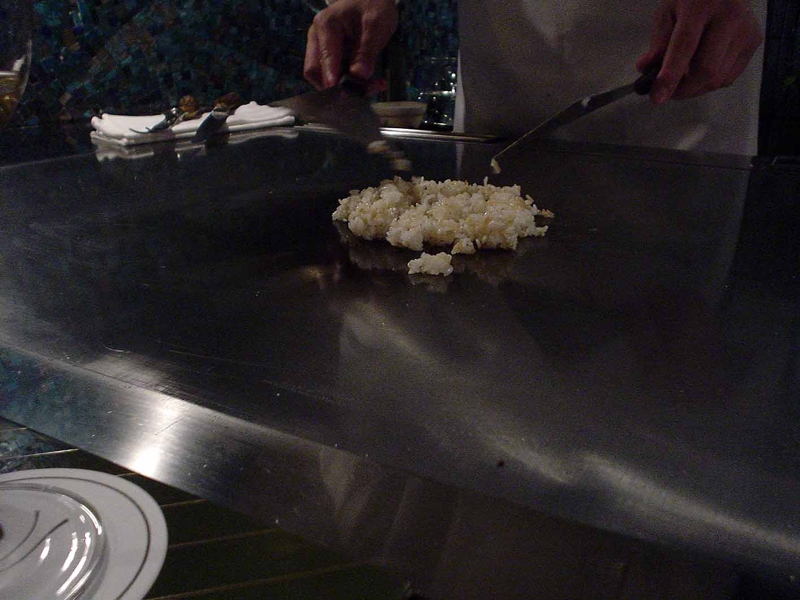 この店は鉄板焼ステーキの店、個室もあるけれど、長いカウンターで他のお客さんとズラーッと並ぶ方が美味しいんですよ。お店のスタッフとの楽しい会話も味を引き立てます。もう前日から予約を入れておきました。