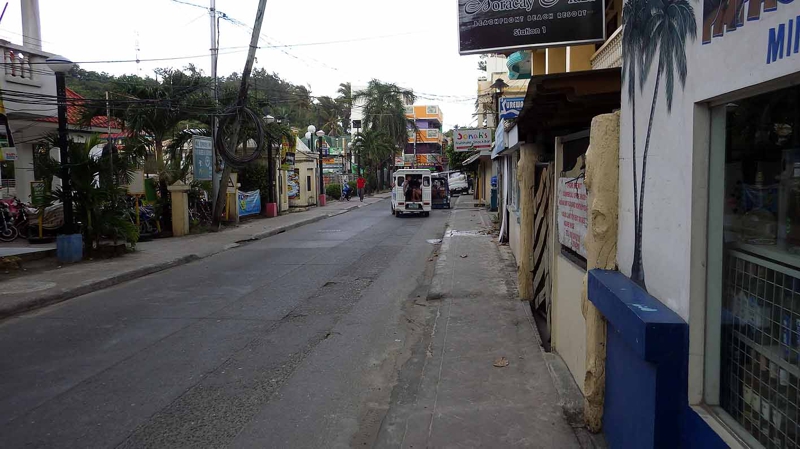 確か、ボラカイ島の西側に伸びるホワイトビーチに平行してメイン・ストリートが走っているはず、しかしいくら走ってもそのような賑やかな通りには出ません。ちょっと心配になってドライバーに尋ねました。まさかこれがメイン・ストリートではないだろうね? って。すると……。