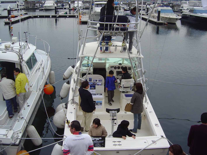 米国Tiara社製のオープンエクスプレス。これだけ大きいのにエクスプレスと云うのは豪快です。しかも船に乗ってみるとパーティを開くための専用船のようなつくり、これこそ遊び用の船そのものと云う感じです。これじゃ絶対に釣りは出来ません。寝泊まりは十分に出来そう。何か良からぬ想像を駆り立てるような船でした。欲しい.....。