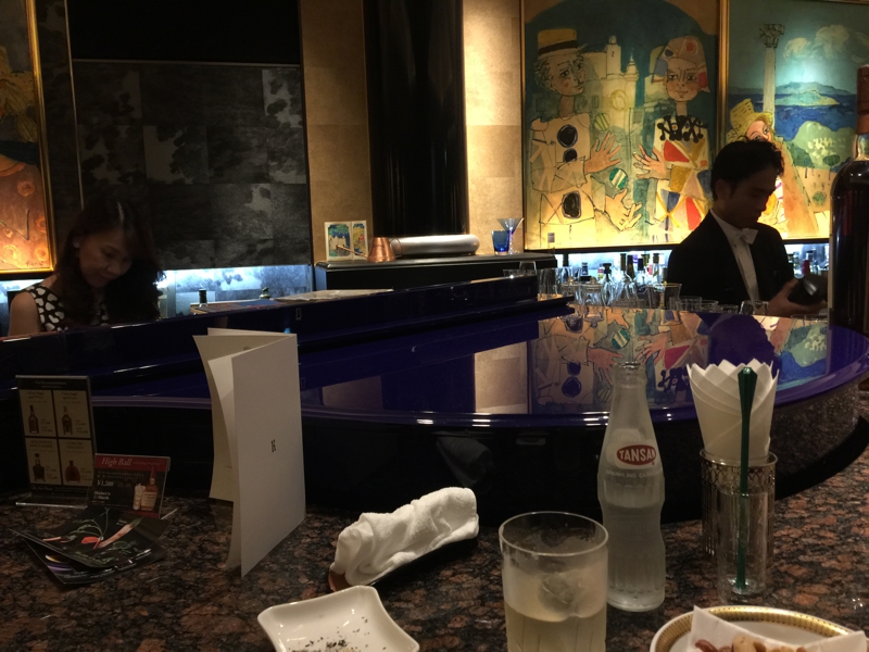 さらっとビュッフェでご馳走になり、30分程で会場を出て来ました。そこそこ腹八分目くらい、糖尿病の講演の後はそれくらいが良いでしょう。普段ビュッフェで酒を飲まない僕も、今日はスコッチの水割を一杯だけ飲みました。そう、講演会の前からここに来る事に決めてあったのです。メインバー、僕の結婚式の二次会の場所です。カウンターに座りました。