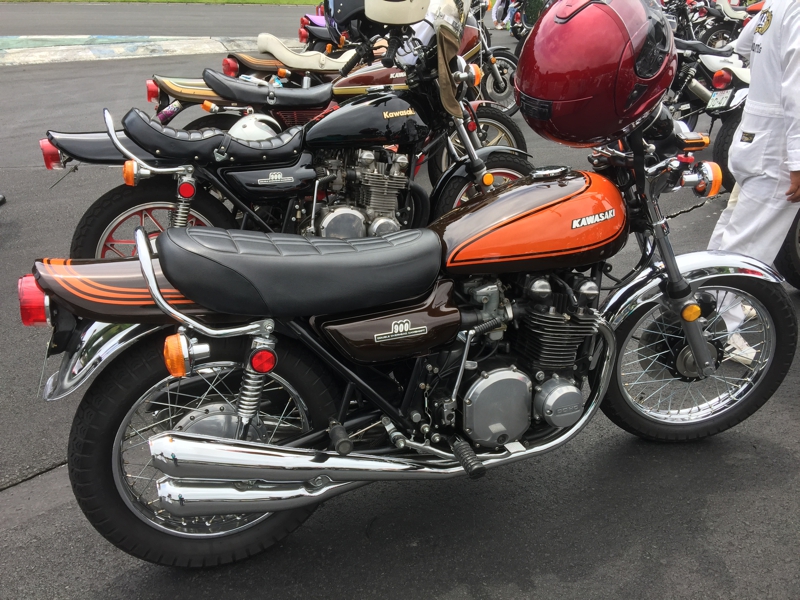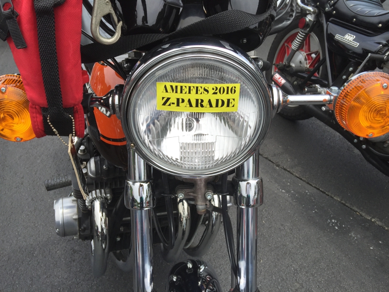 スタッフ曰く「KawasakiのZはパレード・ランに参加出来ますよ。もし良かったらどうですか?」 でもヤマハのT君をおいてき堀にして僕だけと言うのはちょっと申し訳ない、ヤマハの彼は参加資格がないようです。返事保留のままT君に追いついてそんな話をしてみると「先生、是非参加してよ。」との返事、パレード参加者は一般とは別の所に駐輪するようでした。うわ〜! KawasakiのZばっか!