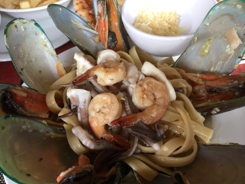 シーフードパスタを頼みました。エビ、イカ、貝が山のように入っています。なかなか美味しい、どうやら昨日のバーベキューを食べても下痢しなかったので、この辺の食事は多分新鮮なのでしょう。パスタはちょっと茹で過ぎ、もう少し歯応えがあった方が良さそうでした。