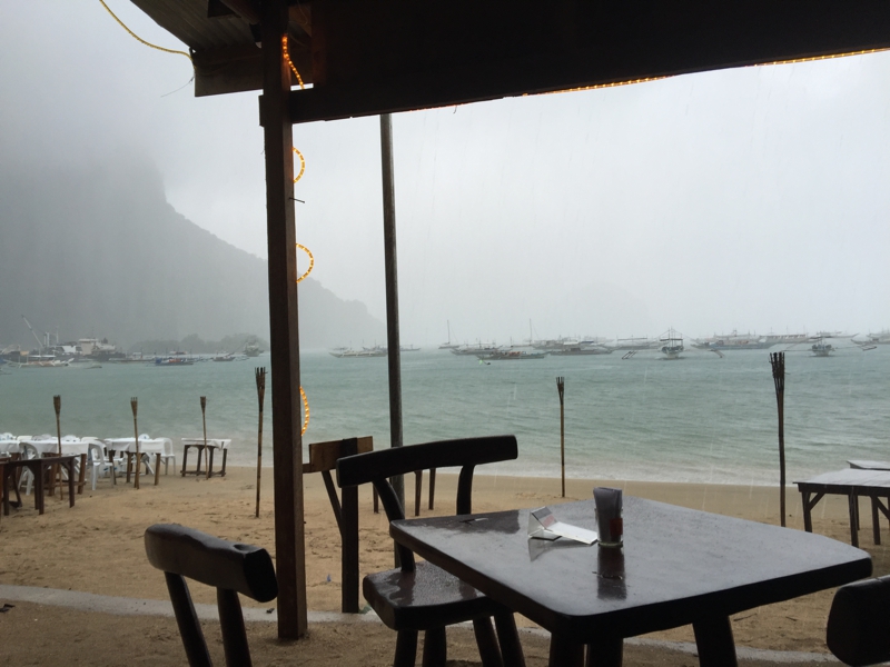 第3日目、 昨日はマニラからここパラワン島のエルニドまで来ました。初めて足を踏み入れる地、心躍ります。しかし……、お天気はあまり良くない、せっかく昨日はレンタルバイクを借りたのに濡れることもあり、今日の夕方まで借りたころ、早々に返していまいました。でも初めて観たエルニド・タウン、そこは歩いていて何となく嬉しくなるような街、物価はそれほど高くなく、食べ物も新鮮な海の幸を含めて美味しい、そしてところどころ洒落たレストランやカフェも多く、未だ未開拓のリゾート・タウンと言う印象を持ちました。開拓され過ぎると物価が上がり、悪い奴らも徘徊しはじめる、この素朴さを大切にしてほしいと思いました。