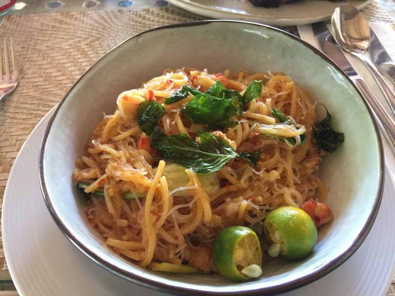 お腹が空きました。午前中約3時間、ボケーっと海を眺めていました。珍しくiPodの音楽なしで転がっていました。そのまま1分歩けばホテルのレストランがあります。今日はフォーの焼きそばを。少しカロリー控えめ。このシークワーサ(こちらではレモンと呼びます)が妙にマッチング。