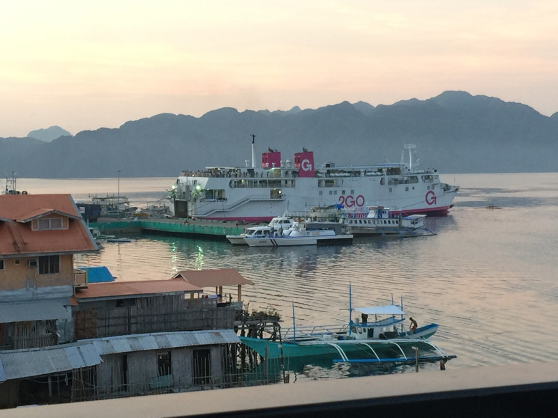 ちょうどでっかい船が港を出て行くところでした。何処へ行くんだろう? 4-5時間でエルニド? 或いはパラワン島最大の街プエルト・プリンセサ? そんな行く先を決めずにのんびりと船に乗って島を巡るアイランド・ホッピングが夢ですが、それを実現出来る迄生きているかどうか?