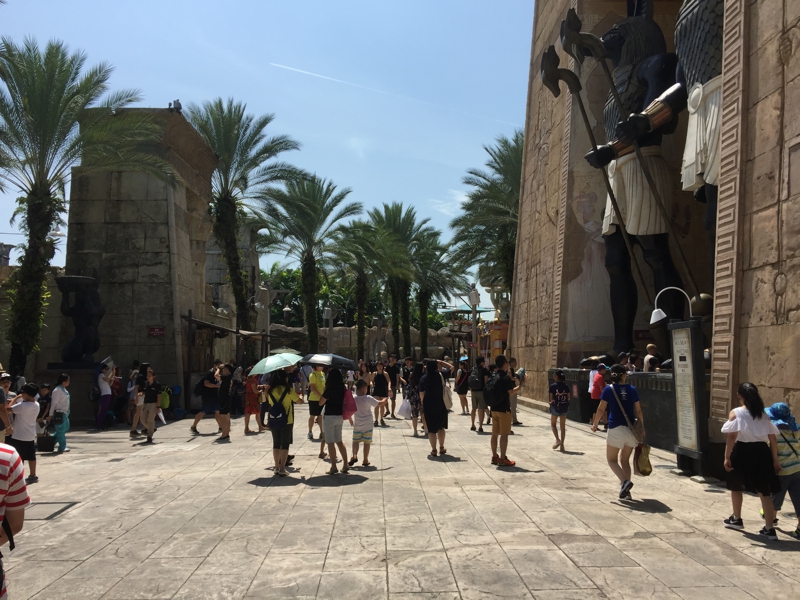 ここはジュラシック・パークがテーマ? 恐らくは人気のあるコーナーなのだろうけど、あまり人の出入りはないようでした。恐らくは恐竜に出会うようなアトラクションがあるのか? まぁ、僕自身はそのエリアに足を踏み入れる事なく、そのまま素通りです。恐らく恐竜のフィギュア等を売るショップもあるのではないでしょうか? そこそこ暑く、結構汗をかきました。陽焼けも出来そう。