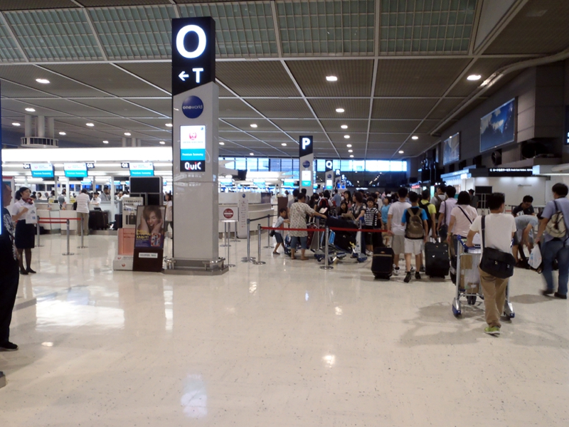 余裕を持って空港ロビーに着きました。今回はマイレージでビジネスクラスを確保、すぐにチェックイン、パスポートも機械で読み取り、e-チケットのおかげで実にスムーズです。エコノミーはだいぶ混んでいるみたい。わざわざ夏休みを1週間後ろにずらして、混んでいるところを避けたつもりです。