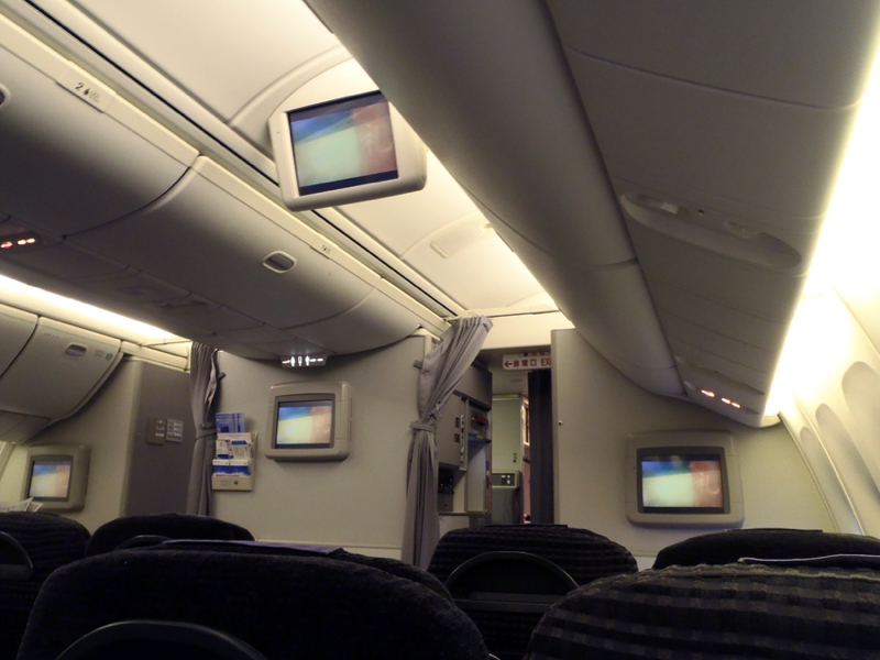 いつもお決まりの前から3列目、日本の夜景が見たくて必ず右側の席を確保します。マイレージで席を確保した時点で、インターネットを介して座席まで自分で指定出来るのです。今日はビジネスクラスはガラガラみたい。恐らくは離陸後眠ってしまうだろうけれど、それならエコノミーでも良さそう。