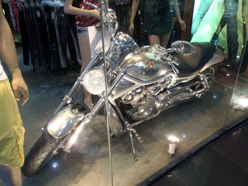ロビンソン・デパートに来ました。毎回子供達へのお土産は衣類、少し下見をしました。この店にはいつも必ずショーケースにハーレー・ダビットソンが置いてあります。今回はV-ロッド。シルバーの渋い奴でした。でも街中でハーレーが走っているのを見た事はありません。きっとものすごく高価?