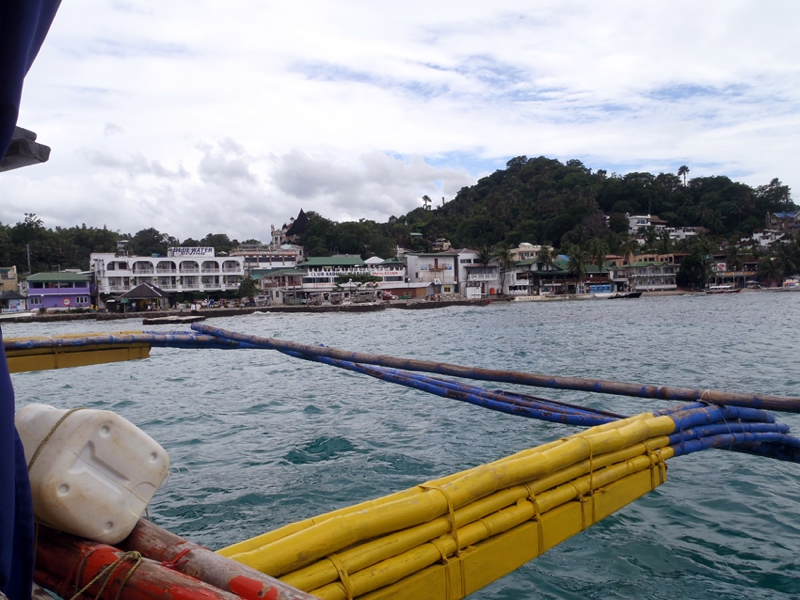 プエルトガレラ、サバンビーチの街並みです。いや〜、永かった。過換気を起こした女の子にとっては地獄のようなクルージングだったでしょう。今にして思えばスリル満点? こんな経験もフィリピンならでは.....。しかし港が混んでいるのか? 沖合でまた15分くらい待たされました。