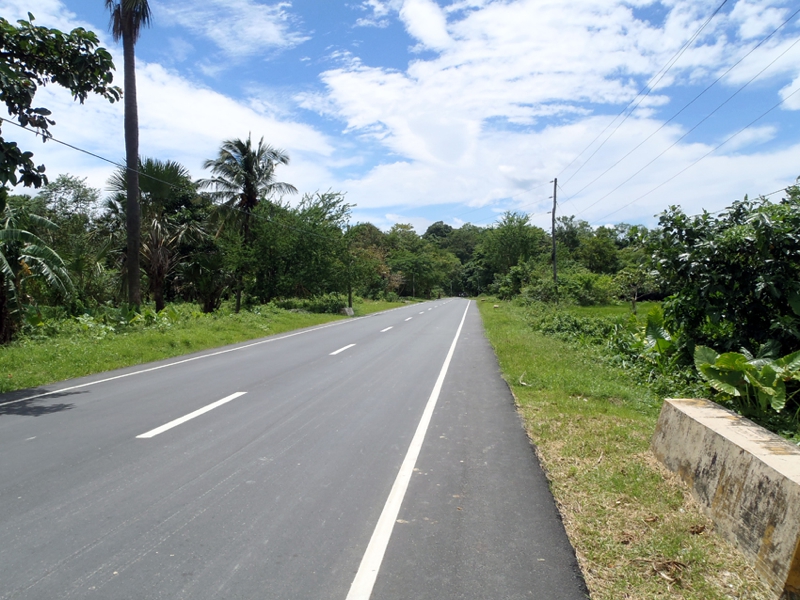 まだまだ道は続きます。道の先には青い海も見えます。こんな所に住んでいたら長生き出来るだろうな? でも1週間もいたら飽きちゃうかな? 今までフィリピンのあちらこちらを見て来ましたが、こんな景色にはなかなか巡り会えなかった、正に僕にとっての非日常が現在進行形で進んで行きます。