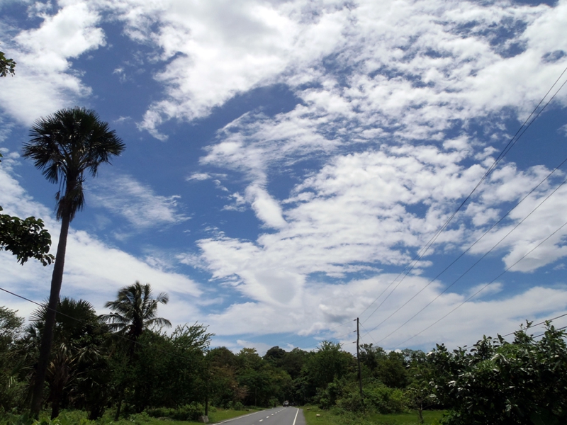 更に1本道が続きます。さすがにすれ違う車もバイクも少ない、たまに現地に住んでいる人が歩いているだけ、見慣れない風体の外国人をジッと見ていました。お天気は最高、バイクで走っているだけで腕は灼けて来そうです。でも決してうんざりするような暑さではなく、風もさわやかです。