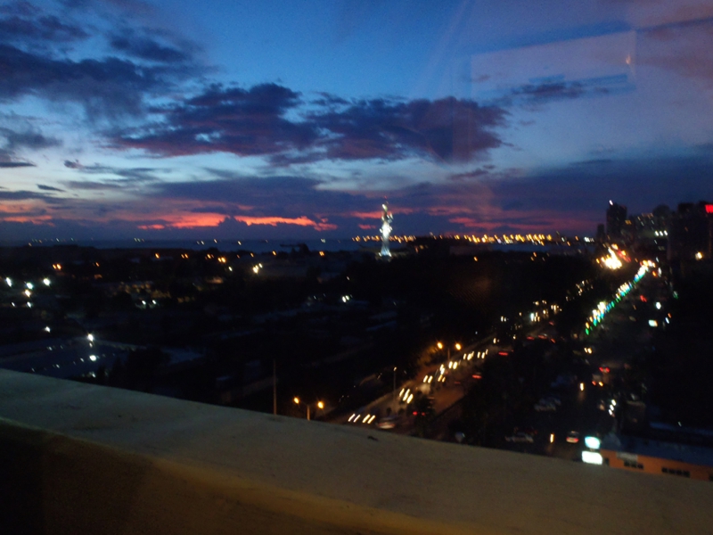 マニラに夜の帳が降り始めました。実はホテルに着いてから一眠りしたのです。また例によって雲が多くて、奇麗なサンセットは見られませんでした。さてこれからどうしようか? 連れがいないからこそ、どんな行動を取るか? 全くの自由です。明日は少し買い物、家族へのお土産を探しに行きます。