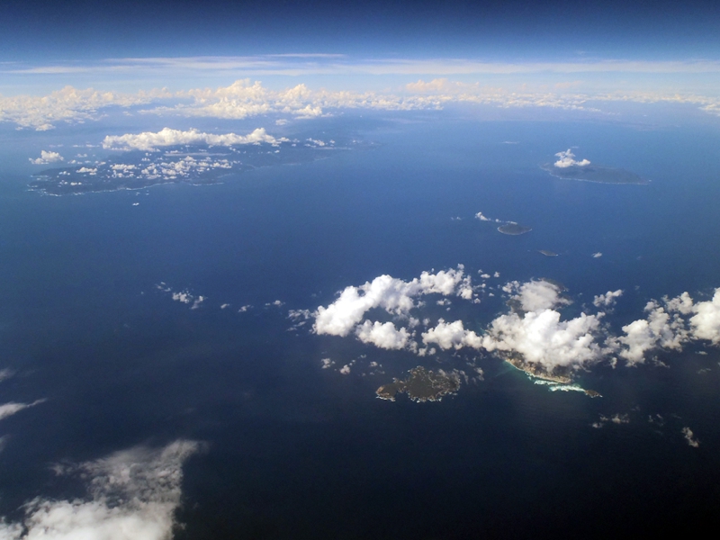 飛行機は定刻に出発、楽しかったフィリピン(最後は不愉快なことばかりだったけれど)を後に、窓の外に奇麗な海を見下ろします。また来るね.....、そう思いつつ現実に引き戻されて行きます。たまたま隣に座った日本人の人と話し込み、名刺交換もしました。リタイヤして今はフィリピンで工場を持っている? 羨ましいリタイヤです。