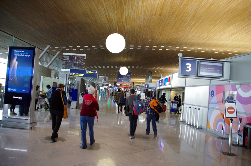 マイレージで取ったJAL便でパリのシャルル・ドゴール空港まで来ました。ここは到着ロビーから少し歩いたところ、トランジットの時間は充分、むしろ少し持て余すような余裕がありました。東南アジアとは空気が違う……。