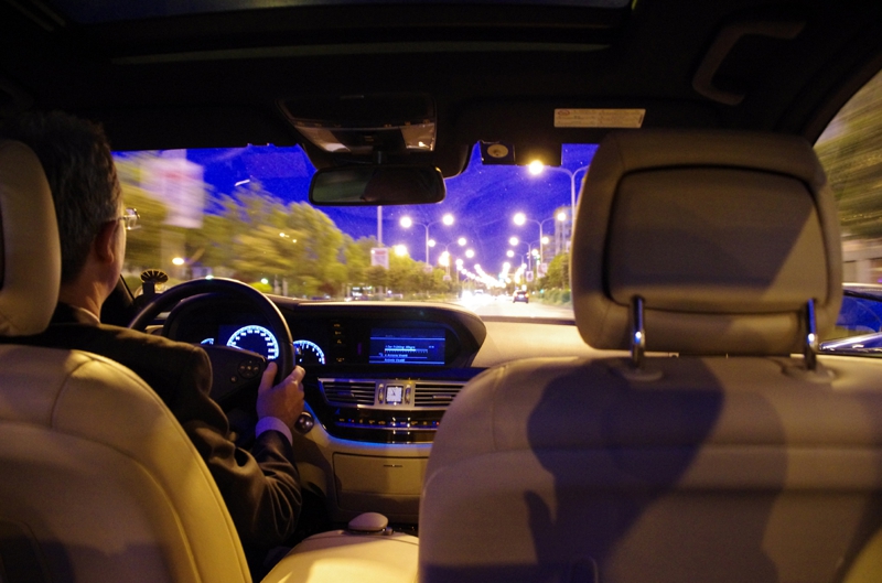 空港の出口ではすぐに送迎のドライバーが見つかりました。迎えに来ていた車はベンツのSクラス、なかなかの待遇です。もうこの頃は外は真っ暗、完全に夜になっています。しかしドライバーとの話は弾みません。やっぱり東南アジアとは何処か雰囲気が違います。