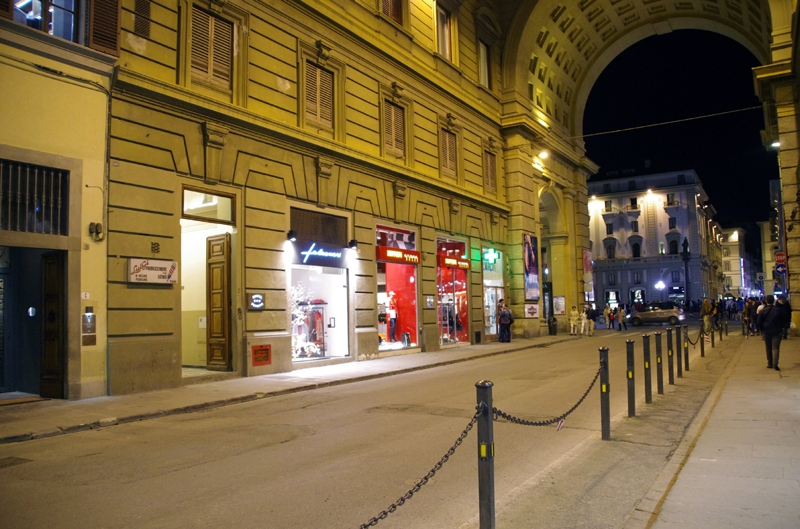 さて街歩きの開始、もちろん空は真っ暗でしたが、街には街灯も灯り、更に道路の両側が3-4階建の建物に取り囲まれ、間接照明の効果もあって結構明るく感じます。ローマほどは治安は悪くないだろう、そう勝手に思い込み、割と警戒心なく歩くことが出来ました。