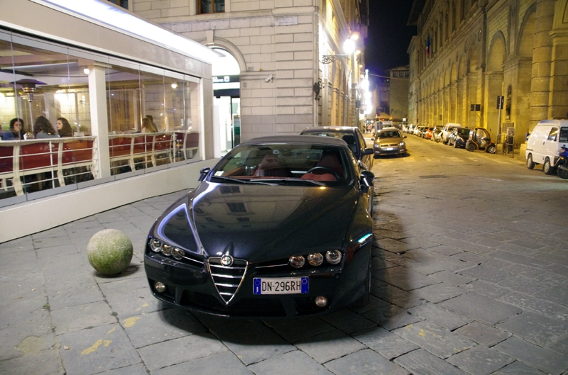 お腹も落ち着き、のんびりホテルに戻ることにしました。イタリアと云えども、フェラーリやランボやマセラティがごろごろしている訳ではありません。しかしさりげなくアルファロメオが。そう、この街は路上駐車ばかり。それぞれ停める場所が決まっているのでしょうか?