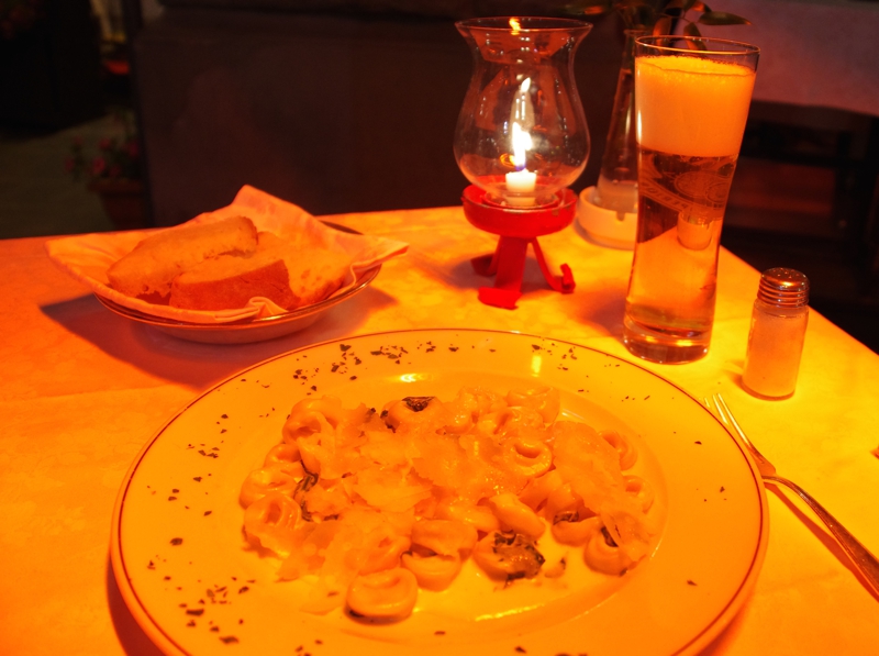 リストランテではなくてこんなトラットリアの方が気楽だろう、そう考えました。何ぶん一人ですから、コース料理を食べるわけでもないし、肉料理や魚料理で訳のわからないものを頼むのもイヤだし。そんなこんなで焦りながらもウロウロ、時間はドンドン過ぎて行きました。