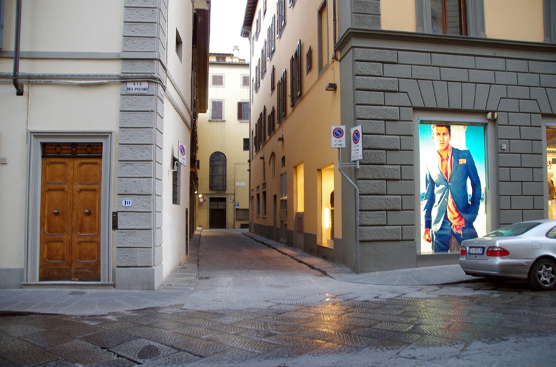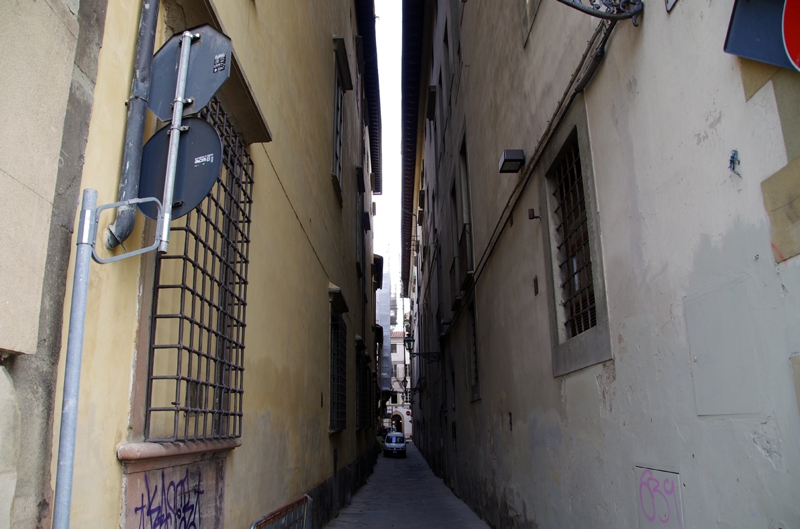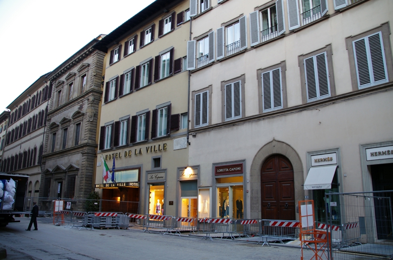 今回の旅行のPlanningの段階で、Webで調べる中でアルノ川沿いに泊まりたかったホテルがもう2軒ありました。そのうちの一つがウェイスティン、この道を歩いて行くうちに見つけました。5階建て? もしアルノ川沿いのベランダ付きの部屋を取れたら夕方から夜にかけ、ずっと腰掛けて夜景を眺めていたでしょう。