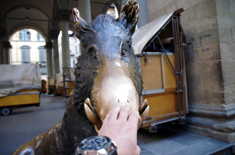 こいつには逢いたいと思っていたのですが、探すことなくさりげなく巡り会えました。ボッチチェリーノのイノシシのブロンズ像、この鼻を撫でると幸せになれると書いてありました。だからみんなが触って、鼻のところだけ綺麗に磨かれたように金色に光っています。