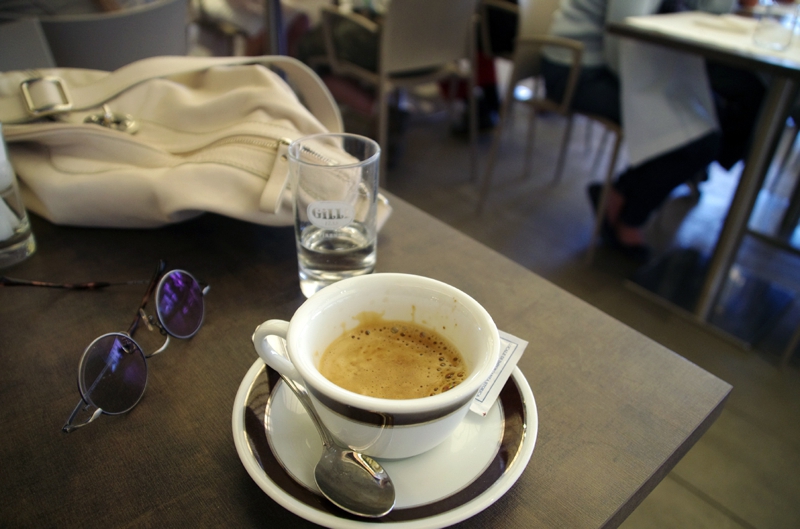 喉が乾いた、ひとまず何か飲もう。近くのカフェに入りました。……、しまった、コーヒーでもアイスって言うの忘れた。この暑い中でホットコーヒーも辛い物があります。ちょっとだけ口を付けてここを出ました。ランチはどうしよう? 今度はビザにするかな?