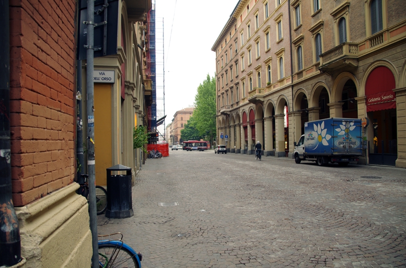 未だ目が醒めきらないボローニャの街、人も車もあまりいません。夜が早く朝が遅い街? イタリアでも田舎の街と云うよりは町、のんびりしているのでしょうか? メインストリートもこんな感じでした。フィレンツェとはだいぶ違う、何処かノホホンとした雰囲気が漂います。