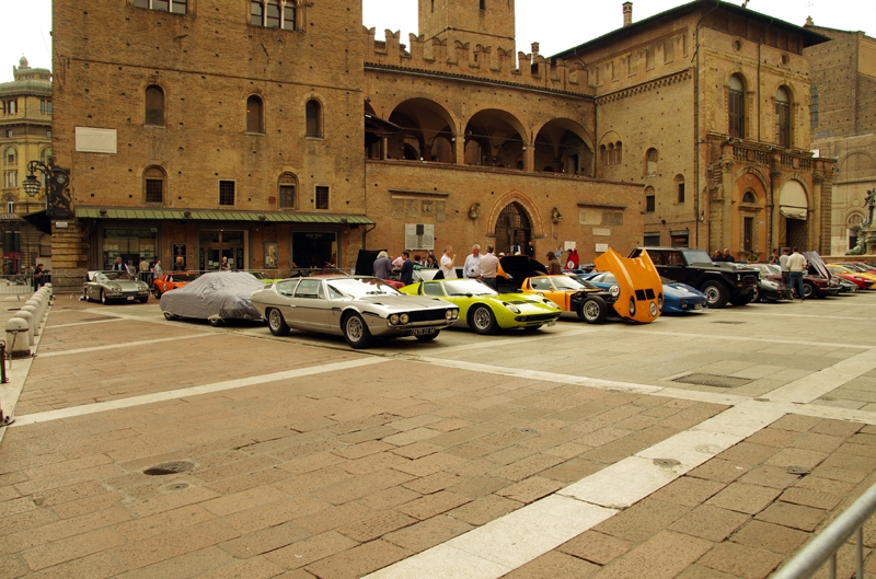 第5日目、 ボローニャで目が覚めました。結局昨夜はご馳走になったレストランから友達に車でホテル近くまで送ってもらい、その後Barに行くことも出来ずにホテルへ戻って大人しく就寝となりました。朝はまたシャキッと起床、今日はまたマヨール広場でツアー一行と合流、ランボルギーニ本社へ向かいます。当初はランボルギーニ本社主催の50周年記念パーティに出たかったのですが、参加資格があるのは車を持ち込んだ人だけ、僕ら部外者は会場には入れないことが分かりました。そうでしょうね? 僕が参加できるようなら会場に一体何人のゲストが集まることやら? やはりそれなりの待遇を受ける人は、それなりのことをした人でないと。パリ・ボローニャ間は陸続きで約500km、パリのオーナーは東京から大阪へ行く感覚で参加できるのです。やはり日本は島国、事情は特殊です。