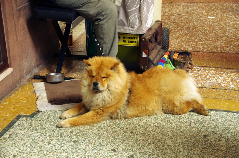 イタリアにいた中国産の犬? 足下で大人しくしていました。だけどこのチャウチャウ、かなりでかい…。さて、バスに向かいこれからまたサンタアガタのランボルギーニ本社に向かいます。工場の中に入れてもらえるかどうか、ただ行って帰ってくるだけになるかも知れないとの話もありました。