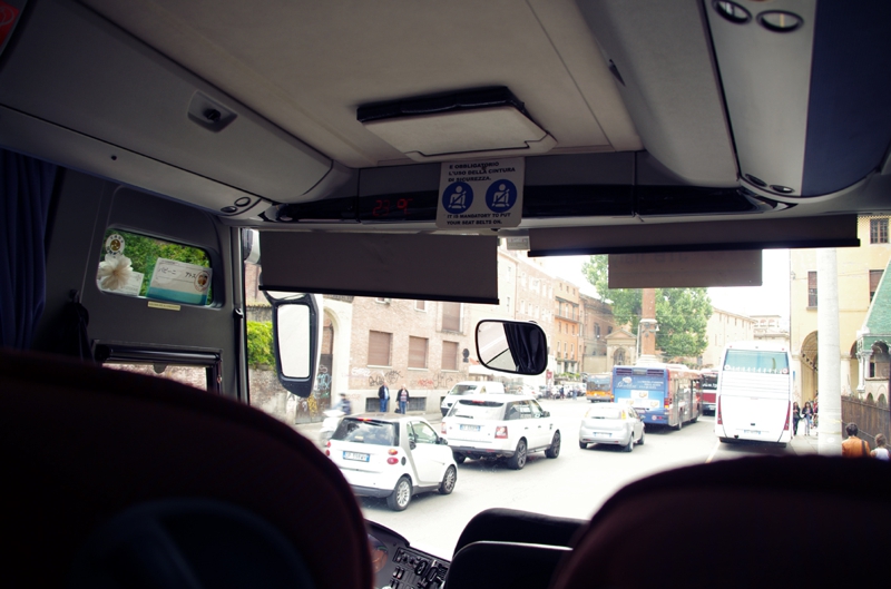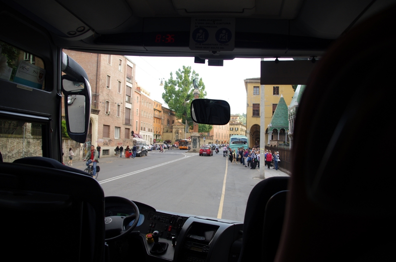 ようやくバスが動き始めました。また再度、ボローニャ市内に戻るそうです。もう広場にいたランボルギーニ達は本社の駐車場へ入っている頃、僕らはそこを離れ、別行動になります。本当はちょっとしたつてで、もしかしたらパーティに参加出来るかも知れないと云う話もあったのですが、実現しませんでした。でも満足です。