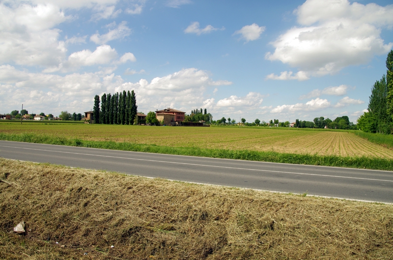 やはりかなりの田舎? 素晴らしいお天気の下、のどかな田園風景が続きます。ずっと以前からランボルギーニ本社は郊外にあり、その地域全体がほぼランボルギーニによって成り立っているとは聞いていました。イタリアの田舎、それだけで心浮かれてきます。