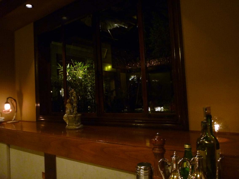 診療が終わってから出掛けました。今日も結構寒い。店に着くとまずはWaiting Roomでしばし案内されるのを待ちます。窓の外はテラス席、確かに春や秋はあそこでランチでもとるのは良いかも知れない。しかし今日みたいな日は到底無理だな? 時間がかかる時はここで食前酒が出ますが、今日は間もなく部屋に案内されました。