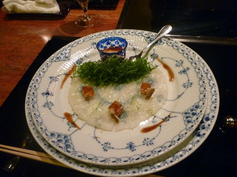 いよいよ鮑が蒸し上がりました。つい先ほどまで生きていたのに....。今日も各人一人1ヶずつ。かつてはスライスしたものをシェアしていた時期もありましたが、ここ最近は丸ごと1ヶ出て来るようです。鮑はなかなか取れない? いいえ、鮑はたくさん取れるのですが、高値を維持するために出し惜しみしていると聞いた事があります。