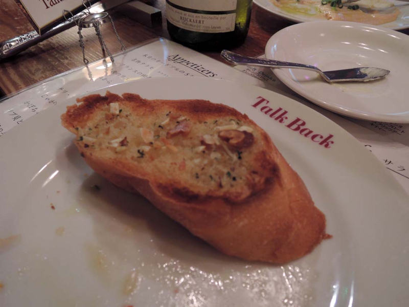 これ、この店の僕の一番のお薦め、ツブ貝とキノコのガーリックソテー、エスカルゴみたいな感じでものすごく美味しいよ。それとこの下に溜まったガーリックオイルをパンにバターをつけてすくって食べると最高に美味しいんだけれど。エッ? またパンのおかわり? 前菜とパンだけでお腹一杯になっちゃうよ。未だメインディッシュは頼んでいないのだから。