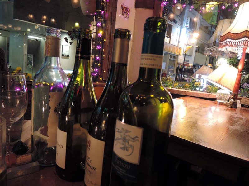 この上何とお店のスタッフの勧めで食後酒をグラス1杯だけもらうことになりました。グラッパってイタリアの食後酒があるけれど、あれは結構強いよね? もらった酒もかなり強いものでした。約1名、舌を出しで「カ〜ッ!」とか云っていました。アブサンに近い酒? 火を付けたら燃えそうでした。でもよく食べたし、よく飲んだね。満腹です。店のスタッフも空いたボトルの本数を見て唖然…。