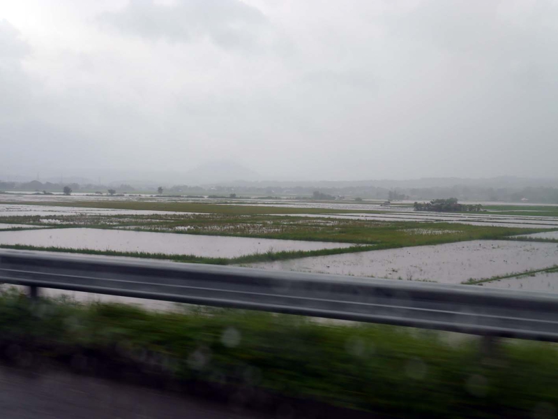 高速道路を走っていますが、窓の外には最初は少し住居があったものの、その後途中は畑や田んぼばかり、田んぼはかなり水が溢れ、作物が大丈夫なのか? と人事ながら心配になります。沼や湖なのか? 田んぼが冠水しているのかどうかもわからない状態、マニラでも大雨が降ると道路が冠水し、未だこの開発途上国のインフラがきちんと出来ていないことが判ります。やがてクラークのICを出てそこから一般道を走ること約15分、次の宿泊地、クラーク市内に無事に到着しました。