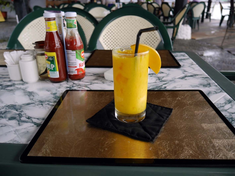 別途にコーヒーを頼んでから更にこのマンゴージュースをオーダー、結局この席に1時間半座っていました。プールサイドで明るい広い空間の中、それほど暑くなく、頬を撫でる風が気分良くて非常に居心地が良かったです。未だ非日常の中にいる、そんな気分に浸れました。このホテルのオリジナルシャツ、かっこよくて自分用と友人用にだいぶ買い入れました。