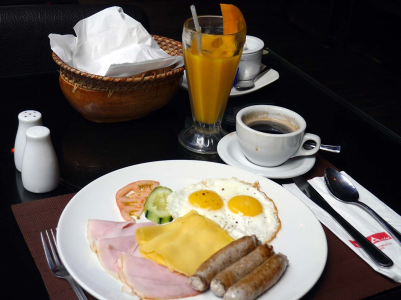 このホテルは朝食は別途料金、ビュッフェではなくアラカルトでオーダーしますが、かなりメニューも豊富、自分の好みに合わせてセッティング出来ます。プレートの写真を撮っていたらウェイトレスが僕の写真を撮ってやるからカメラをよこせと言います。当然チップを払わなくてはならないので、そんな下心も彼女にはあるのでしょう。