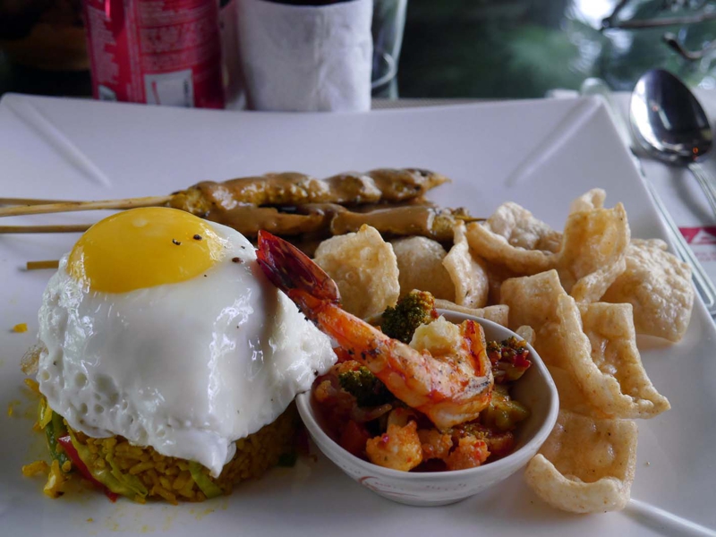 午後12時にチェックアウトを済ませ、もう一度朝食と同じ席でランチを食べて出掛けることにしました。今はフィリピンにいるのだけれど”インドネシア風フライドライス”、シュリンプのフリッターとサテ・アヤム(焼き鳥)が付きます。結構旨い! さぁ! スービックに出発です。