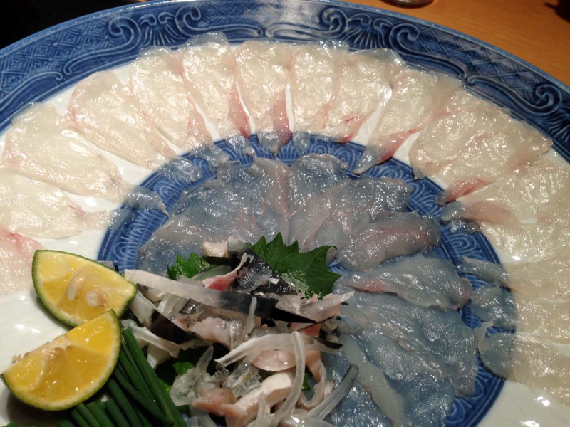 「キシロカインの使用量は……?」 うちの検査でキシロカインがOver doseになるなんてことはないよ。今まで通りで良いよ。ふぐ刺が出てきました。刺身は1枚ずつじゃなくて、こうやって箸でズズズ〜って持って行きたいね。今日のはそこそこ厚く切ってあるぜ。