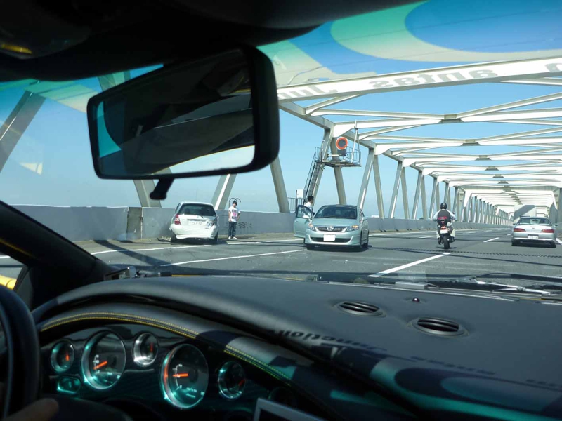 2回ほど交代しながら、東北道に入ってからはずっと娘にステアリングを握らせました。「うん、悪くないぜ。ただシフトチェンジの時にステアリングを握るのが片手になるとちょっと車がぶれるな。クラッチワークはそれで良いよ。」父親からそんなアドバイスが交わされます。