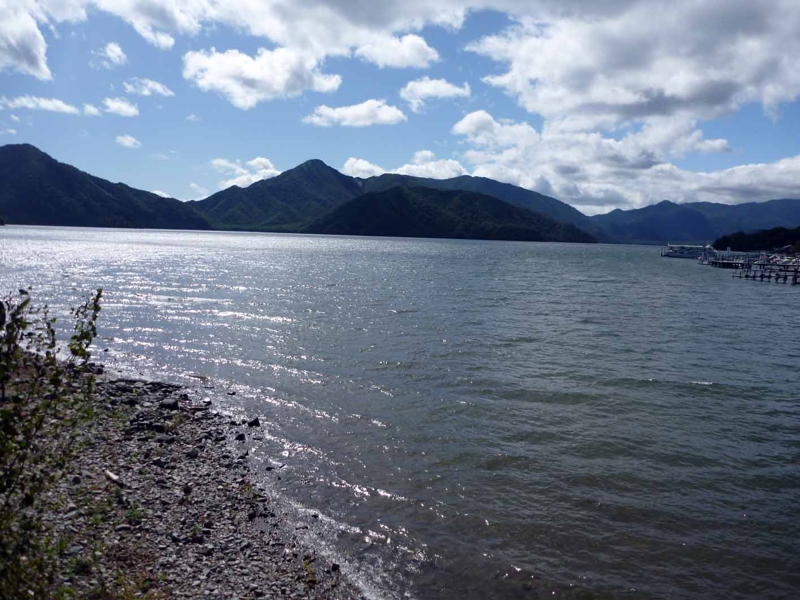 湖畔まで3分ほど、歩いて出て来ました。ふか~く深呼吸、空気もきれいです。水もなかなかきれい、今まで何回となく中禅寺湖に来ましたが、やはりこの素晴らしい景色はいつ見ても良いもの。紅葉の季節に入ると渋滞で、とてもじゃないけれどこの辺には近づけません。