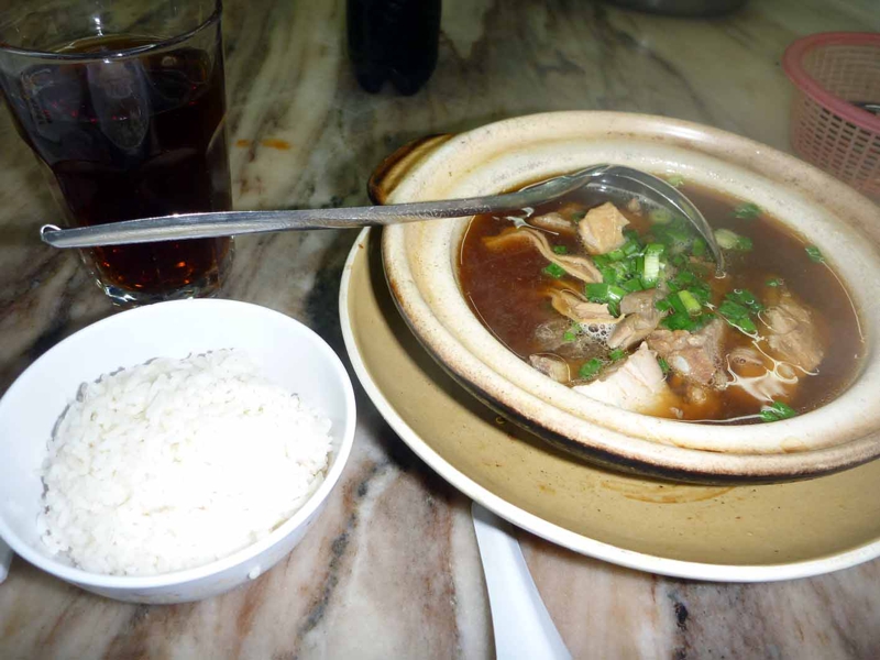 これが日本にいるうちから食べたかった肉骨茶、バクテーです。それもKL一の! 美味しいです! 漢方薬の味が何とも身体に滲み渡るよう。本当に元気になりそうな感じでした。しつこさは全くない。ご飯をスープにぶち込んでこれまた旨い!! 来て良かった! でも.....、暑い。